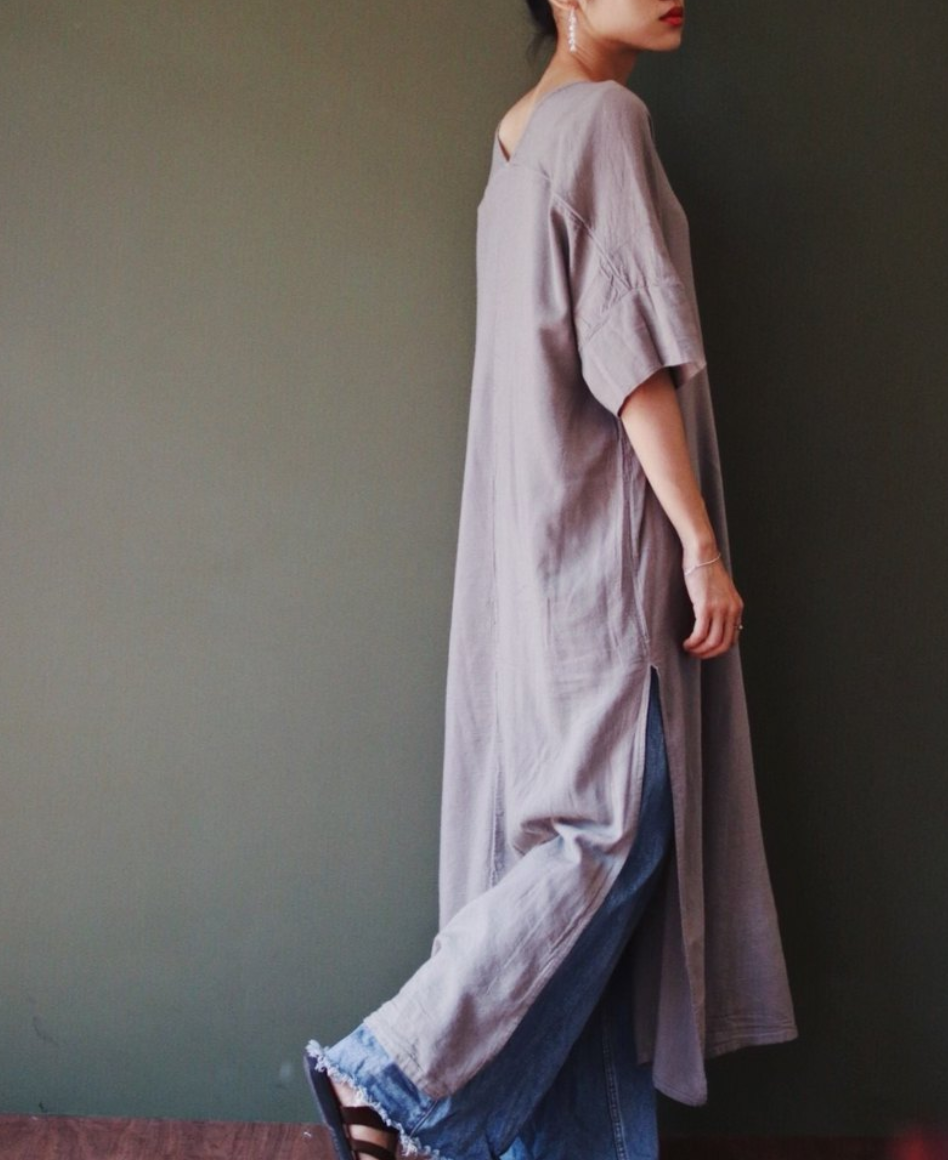 OMAKE Select 長版V領側邊開衩洋裝 灰
